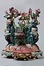 7 figurines, porcelain, glass bits, H ~55cm, W ~50cm