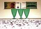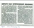 "Проект Тимофея Изотова «Новые банкноты, или Белорусский реализм» (октябрь 1996) был осуществлен при поддержке белорусского представительства Фонда Сороса. Автор в ироничной форме обращался к новым денежным знакам, введенным в обращение в 1994 году, заменяя или дополняя по собственному разумению изображения на купюрах. По мнению Ольги Копенкиной, курировавшей проект, выставка была посвящена теме «материальной зависимости художников и искусства» и носила «коммерческий характер, потому что ее темой стали деньги» [1]. Тимофей Изотов создал 13 классических по технике (холст, масло) полотен, каждое из которых имело собственное название («Гусеница», «Куколка», «Насекомое», «Венера», «В жаркий полдень», «Разъезд», «Памятник архитектуры XIX века», «Атланты и кариатиды», «Новый Гулливер», «Ясь», «Канюшина», «Грудной позвонок») и собственный номинал от 10 рублей до 1.000.000. На наклоненных стендах, задрапированных красной или зеленой тканью, были выставлены 12 работ (одна была изъята по цензурным соображениям) на низком подиуме в центре зала хаотично были разбросаны съедобные облаткимонеты. «Эксперимент Тимофея Изотова, на мой взгляд, основан на том, чтобы поменять местами определяемое и определенное: ценность сделанных им банкнот определяется не цифровым номиналом на них, а качеством картинок, которые обычно служат только фоном для денег», – убежден критик Юрась Борисевич. Сам же Тимофей Изотов отнес свои работы к «арт-маразму» [1]. Бумажные банкноты привычно используются каждым человеком, отличающим их друг от друга по номиналу, размеру, цвету. Изображение на банкноте, сюжет, художественный образ рядовому плательщику интересны, как правило, при появлении новых денег, будь то незнакомые платежные средства той или иной страны или купюры собственной страны, меняющей денежные знаки. Замена или ироническое дополнение объектов на банкнотах, изменение их формата, применение классической техники живописи, выполненные Тимофеем Изотовым, были любопытной, но сильно запоздавшей попыткой искусственной пересадки вариации поп-арта на белорусскую почву". – © Екатерина Кенигсберг "Становление кураторства современного искусства в Беларуси в 1990-Х гг. на примере проектов галереи «Шестая линия»", Искусство и культура. – 2020. – № 4(40). – С. 20–280.