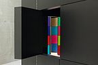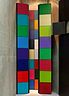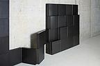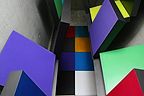 Wood, metal, pigments, varnish, 1800 x 400 x 200 cm, 320 elements, each 46 x 46 x 7,7 cm