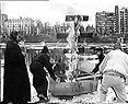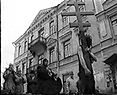 "This performance refers to the story of Josaphat Kuntsevych - a saint and martyr of the Catholic Church who worked for the Greek Catholic Church in the present-day Belarus, in the 16th century. In this way, Pushkin evokes the Union of Brest - the event which brought together the lands that formed the Republic of Both Nations. kuntsevych, one of the detenders of the order established by the union, is symbolic of opposition against the Moscow rule. the procession commemorating the martyr is headed by the artist dressed in a worn robe and carrying the papal cross. As the procession progresses, Pushkin is approached by numerous people who pour paint on him out of buckets. The march finally reaches the river Daugava where the artist takes a seat in a boat. subsequently, together with the papal cross which had previously been burnt, the boat is pushed onto the water."