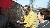 Frames from the video recording of the exhibition and Ales Pushkin's performance "Art Occupy" on the square of Bob, 25th March 2014. Video recording shows nervous attempts of local authorities to prevent implementation of the project.