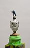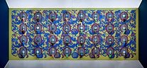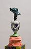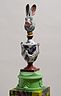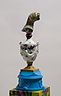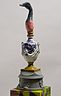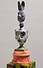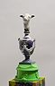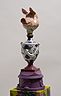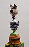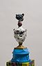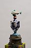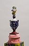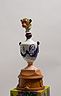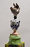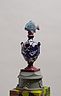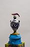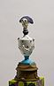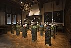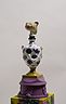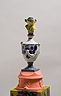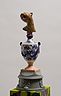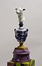 34 porcelain urns with the figurines on top, plaster, wood, silkscreen print