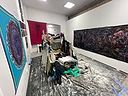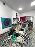 Художник сейчас перед вашими глазами строит дом, муравейник, используя гипс и мусор. В течение выставки домик день за днём будет становиться всё большее и большее настолько, что его уже нельзя будет переносить и придётся уничтожить. А мусор это все, что мы бросаем, все что мы и общество больше не хотим видеть. Или может то, что нам бы хотелось взять с собой туда, куда уезжаем, но мы не можем.