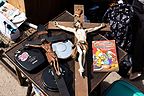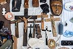 В июне 2023 года во время пребывания резиденции во Вроцлаве я прогуливалась по местному воскресному рынку и оказалась в окружении натюрмортов с распятиями. Случайно скомпонованные, эти натюрморты выделялись на фоне хаоса блошиного рынка. Они нашли отклик в моих исследованиях коллективной идентичности и стали отправной точкой для создания инсталляции "Рынок".