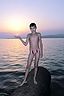 Выбор Владимира пришелся на трубу, которая входила в море прямо на центральном пляже Геленджика. Что по ней стекало в море мало кого тревожило! Приходили на это место три дня подряд, предлагала фотографироваться только тем людям, которые загорали у этой трубы. Не получая отказов предлагала стать по их желанию в той или иной одежде, своего ничего не вносила. Для меня важна была объективность подхода к человеку к таковому, как он есть. Моя задача была только собирать образы. Конечно, могла бы из них слепить что угодно, запрограммировать, спровоцировать, мы художники в этом преуспели неплохо. Но желание приблизиться к объективности, хотя не без легкой степени цинизма,… но от этого уж совсем трудно отказаться.